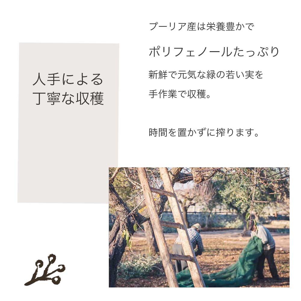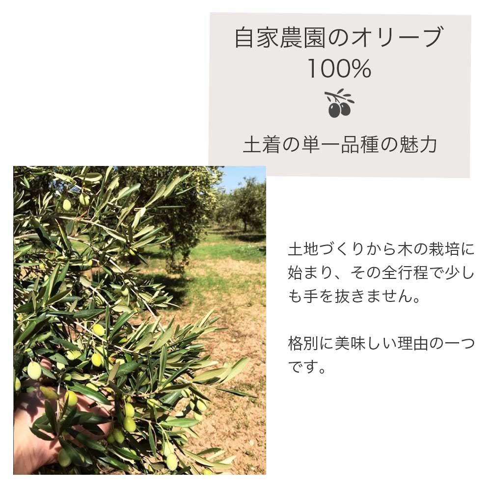 プーリア州の土着の品種の魅力をわかりやすく表現する卓越したオリーブオイル生産者として世界的に評価されています。